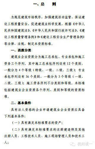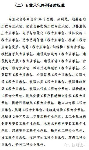 二、专业承包资质有原来的60个变为36个。